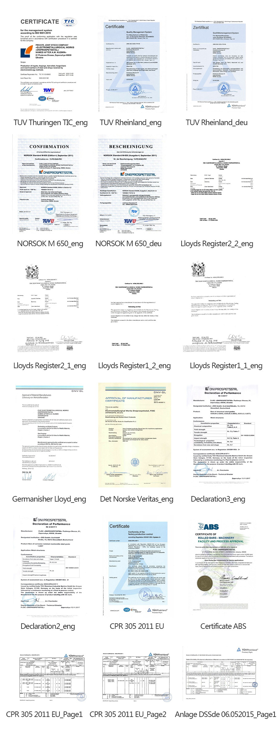 我們的產品質量符合國家和國際標準的要求,其中包括GOST(CIS),ASTM,AISI(美國),EN(EU),DIN(德國),BS(英國),AFNOR(法國),JIS (日本)等。