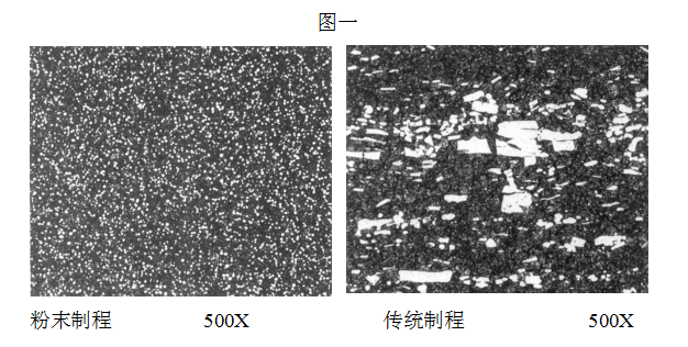 以下就以表一四種粉末高速鋼與傳統高速鋼做比較并且分別說明之: