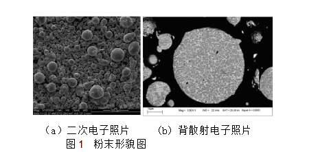 圖 1(a)為二次電子照片,圖 1(b)為背散射電子照片,從背散射電子照片中,可以看到粉末顆粒中的碳化物非常細小。