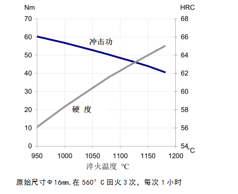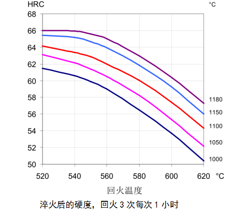 ●建議在560°C的溫度下3次回火,每次至少1個小時,回火之間,冷卻至室溫(25°C)。